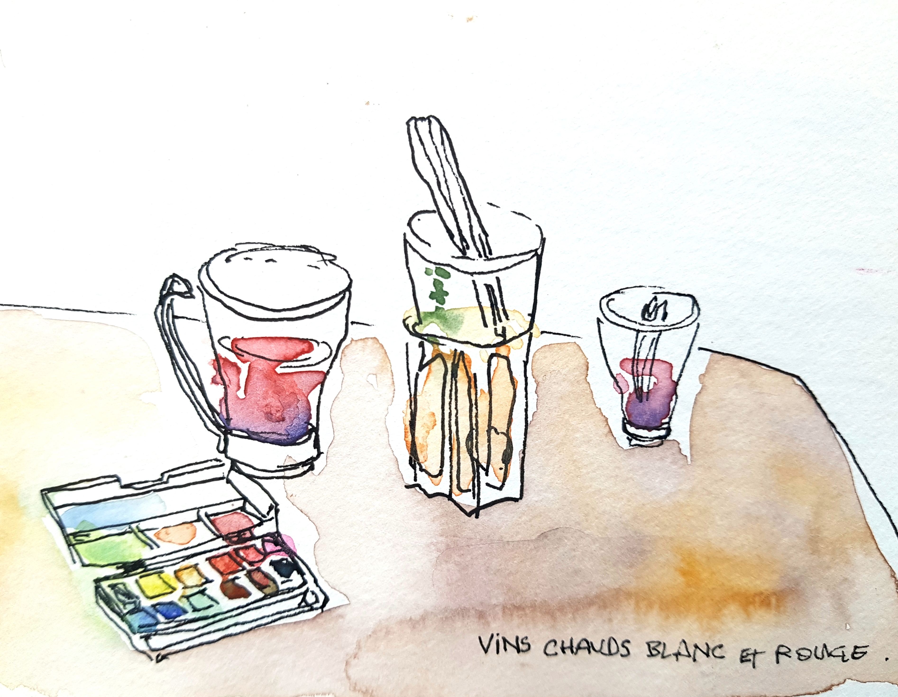 croquis aquarelle, carnet de voyage Vercors, Bar le Samovar